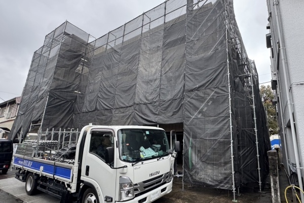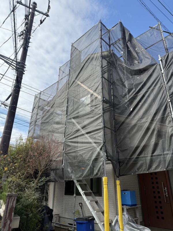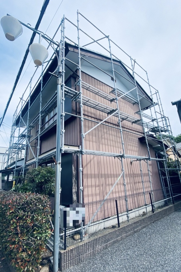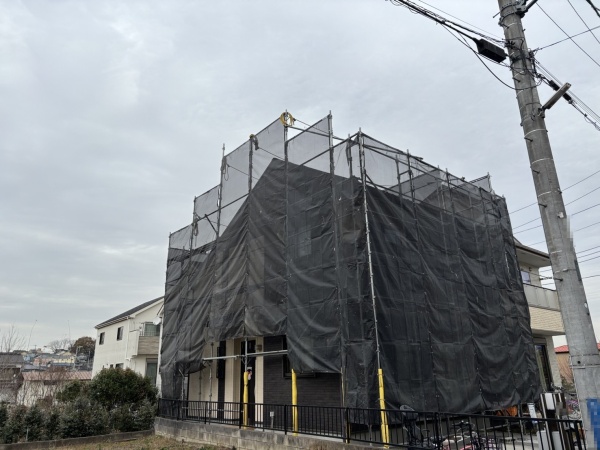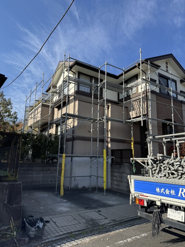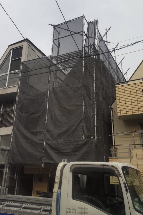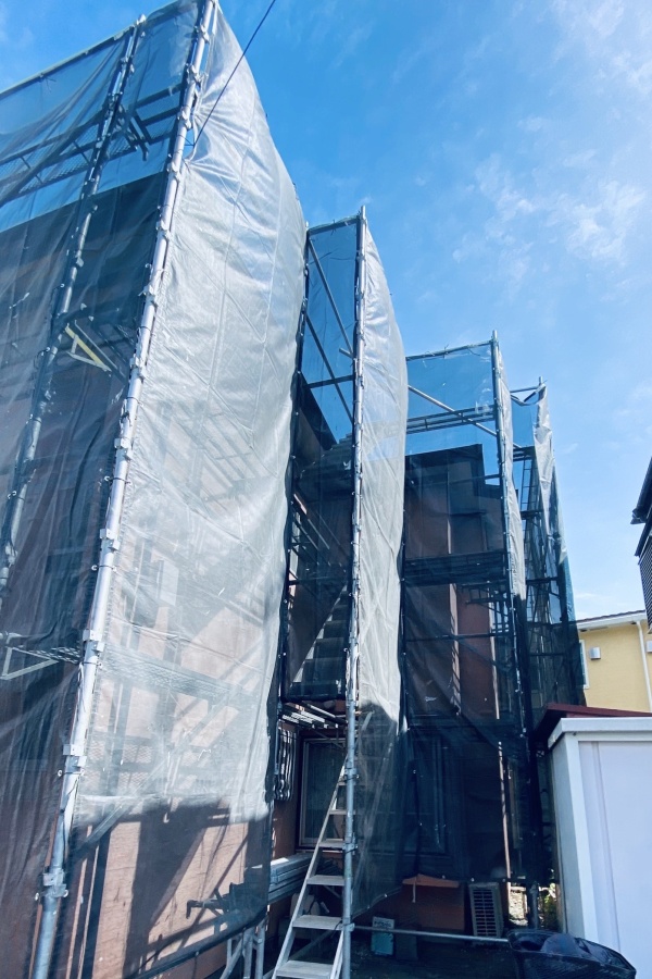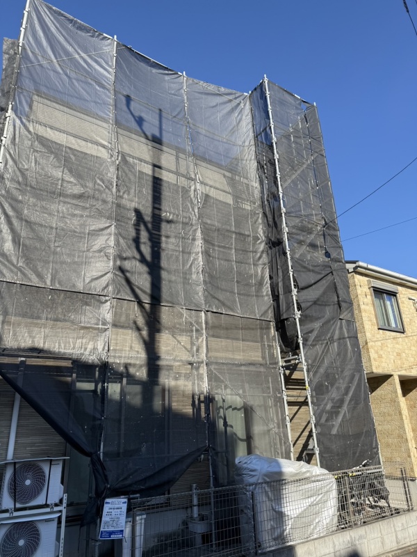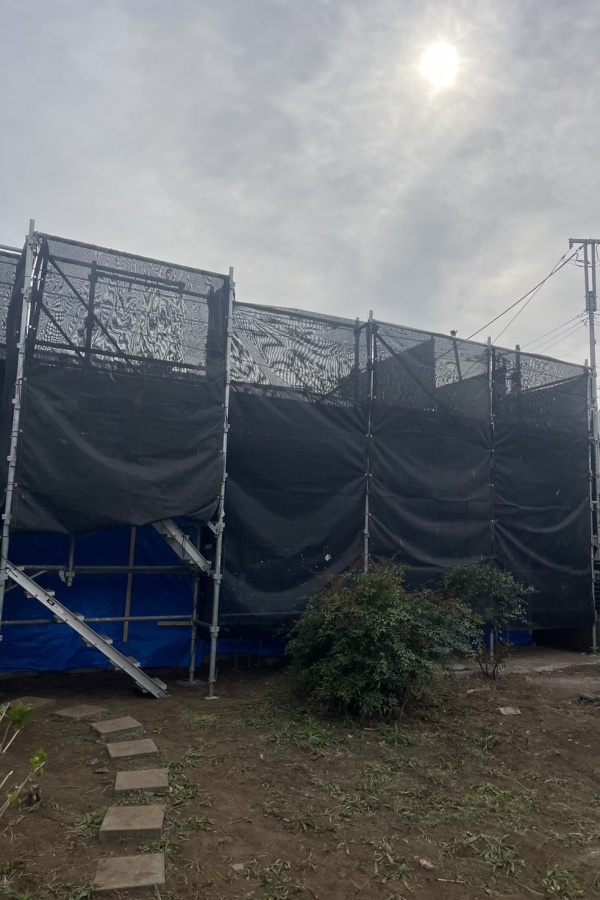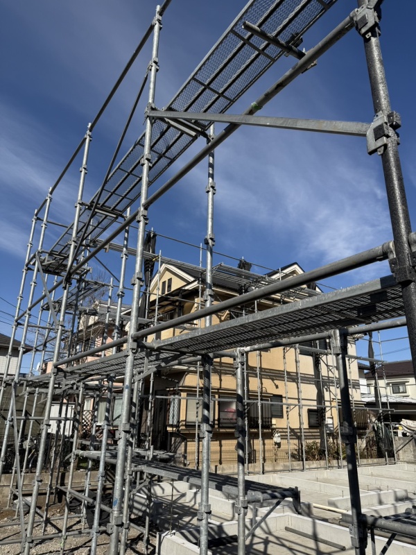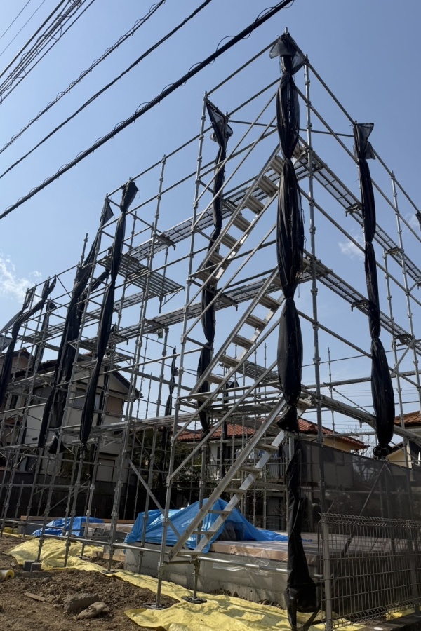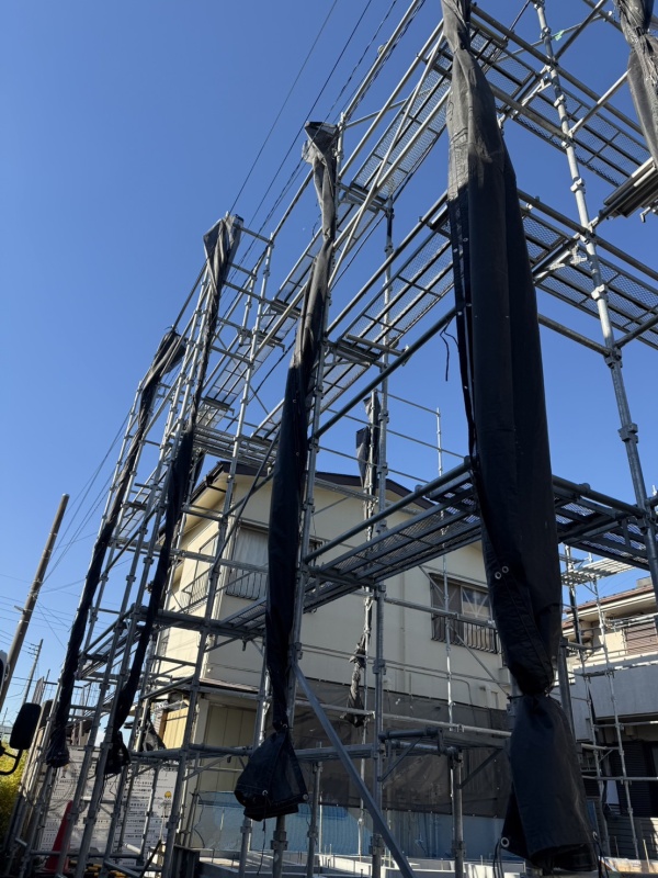 先日、埼玉県所沢市にて、戸建(232m²)足場架設工事を行いました。 2名作業で、約5時間にて無事作業終了いたしました。