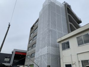 配管に沿って6F建ての屋上まで足場を組みました🙋