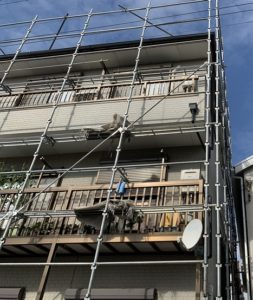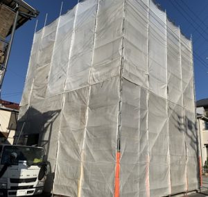 東京都江戸川区において、3F建て住宅の外壁・屋根塗装工事のための足場を施工しました❕❕
