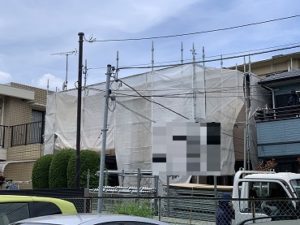 足場施工時、御施主様が車を移動してくださり