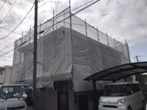 東京都武蔵村山市において、弊社のリフォーム事業部が契約を頂いた改修工事の足場を架設しました❕❕