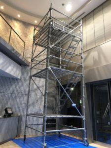 1Fフロア部分には天井作業で移動しやすい様に、1800×1800移動式ローリングタワーを設置しました🙋