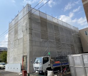 東京都練馬区において、3F建てアパートの外壁塗装工事のための足場を施工しました❕❕