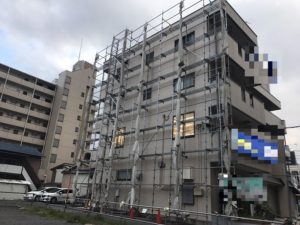 埼玉県戸田市において、4F建て店舗の改修工事のための足場を施工しました❕❕