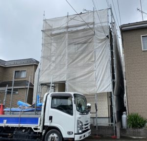 埼玉県三郷市において、2F建て住宅の屋根・外壁塗装工事のための足場を施工しました❕❕