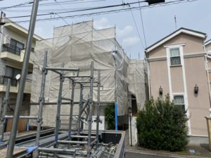 東京都練馬区において、2F建て住宅屋根・外壁塗装工事の足場を架設しました❕❕