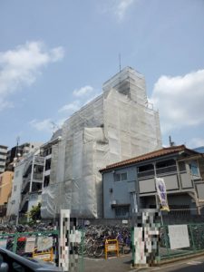 東京都東久留米市において、5F建てビルの改修工事のための足場を架設させて頂きました❕