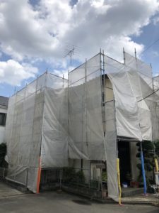 東京都あきる野市において、2F建て住宅の外壁・軒天・破風・雨樋塗装工事のための足場を施工しました❕❕