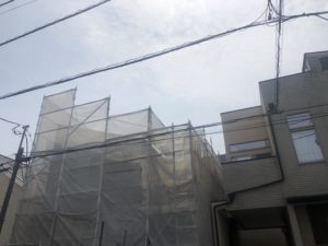 東京都世田谷区において、2.5F建て住宅の屋根・外壁、全塗装工事の為の足場を架設しました❕