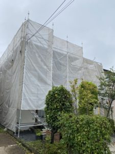 東京都武蔵村山市において、弊社のリフォーム事業部が契約を頂いた工事のための足場を施工しました❕❕
