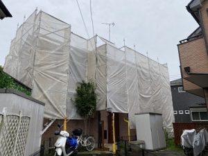 東京都八王子市において、2F建て住宅の屋根・外壁塗装の為の足場を設置しました❕