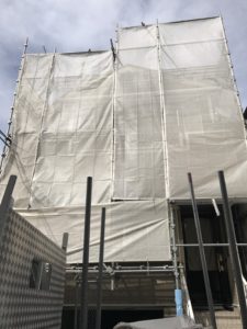 東京都葛飾区において2.5F建て外壁塗装工事の足場架設を行いました。