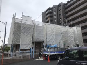 埼玉県さいたま市において2F建てアパート外壁塗装工事の足場架設を行いました。