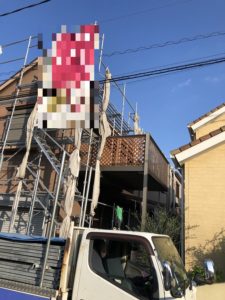 東京都八王子市において、2.5F建て住宅の屋根・外壁・防水全塗装工事のための足場を施工しました❕❕