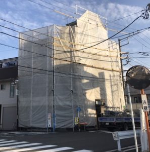 神奈川県川崎市において、下地補修・シーリング工事・塗装工事・防水工事のための足場を施工しました❕❕