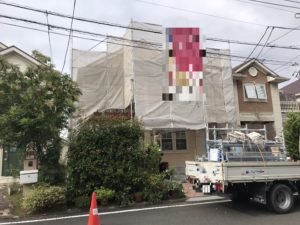 神奈川県横浜市において、2F建て住宅の屋根外壁塗装・ベランダ防水工事のための足場を施工しました❕❕