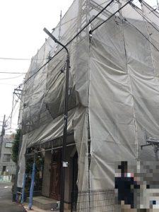 東京都墨田区において、3F建て住宅外壁塗装工事の足場を施工しました❕❕