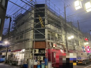 神奈川県川崎市において、3F建てビルの改修工事のための足場を施工しました❕❕