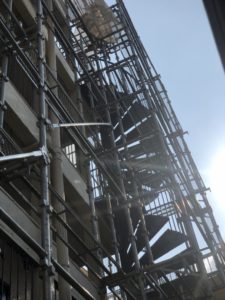東京都北区において、RC4F建てマンションの外壁塗装・防水工事・シール張替え工事の足場を施工しました❕❕