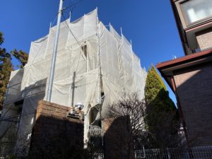 東京都町田市において、2F建て住宅の外壁・屋根塗装工事のための足場を施工しました❕❕