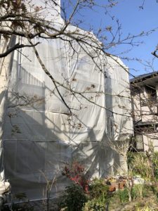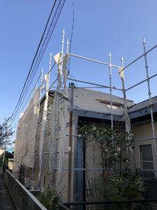 屋根の高圧洗浄をしたあとに外壁も洗浄するため、外壁部分も全面的に組ませて頂きました🙋