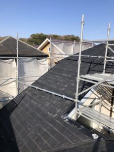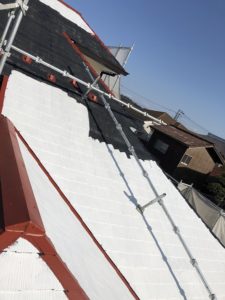 別日に屋根の勾配が少し急勾配で劣化により滑りやすくなっているため屋根足場を設置させて頂きました😄✋