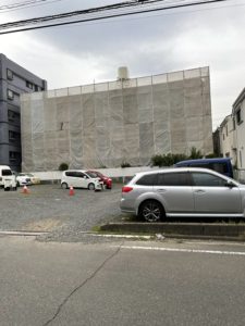 東京都八王子市において、4F建てマンションの外壁塗装・ベランダ防水改修工事のための足場を施工しました❕❕