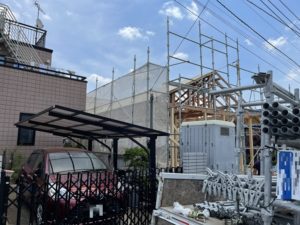 東京都東久留米市において、新築工事のための足場を施工しました❕❕
