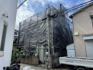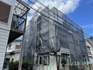 東京都目黒区において、2F建て住宅の屋根・外壁塗装工事のための足場を施工しました❕❕