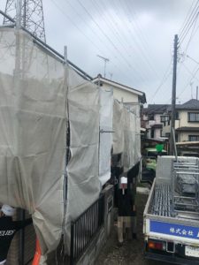 足場架設では外壁・屋根塗装工事ということで仕上がりを楽しみにしつつ、