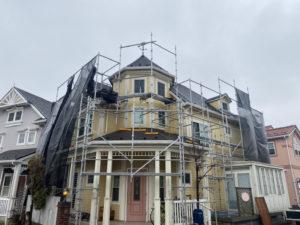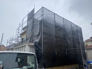 塗装作業に伴い、メッシュシートを取り付けさせて頂きました。