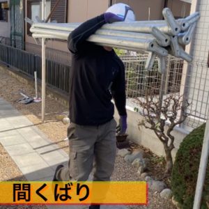 この作業は丁寧に行わないと、足場全体が斜めで安全でなくなったり、足場が繋がらなくなったり・・・