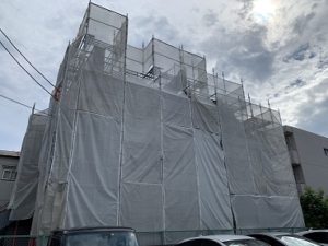 東京都武蔵野市において、3F建てビルの外壁・空調工事の足場を施工しました❕❕