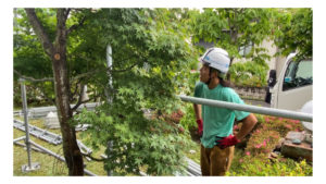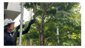 結局、仕事も進めなくてはいけないので、虫の移動は断念・・・木に気をつけながら足場架設を続行いたしました☺️🌸
