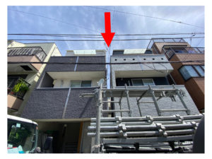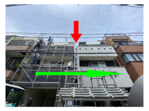 写真だと少し見づらいかもしれませんが、隣接している面に足場が立っているのがわかります。