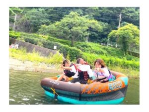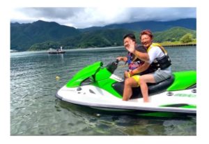河口湖に到着し、ジェットに乗る前に乾杯!