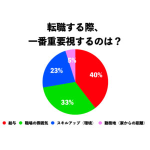 調査内容は、「転職する際、この中で一番重要視するのは?」というものになります。