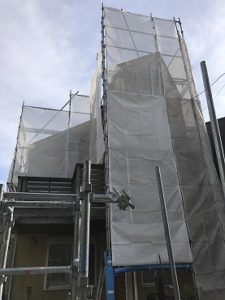 東京都杉並区において2F建て外壁塗装工事及びウッドデッキ修繕工事の足場を施工しました❕❕