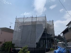 東京都八王子市において、2F建て住宅の外壁塗装工事の足場を施工しました❕❕