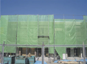 メッシュシートがあることで高圧洗浄時の水しぶきや塗装の際の塗料が
