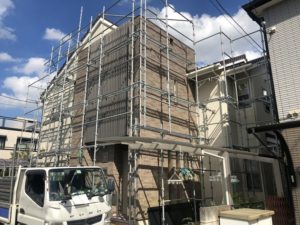 埼玉県新座市において、2.5F建て住宅外壁塗装工事の足場を施工しました❕❕