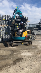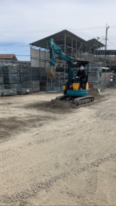 ヤードスタッフのOさんがユンボに乗って、整地してくれています。
