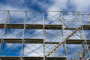枠組足場とは、マンションやビルなどの高層階に足場を架けるときに用いられる手法です。