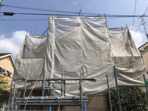東京都調布市において、2F建て住宅屋根葺き替え、外壁塗装工事の足場を架設しました✨