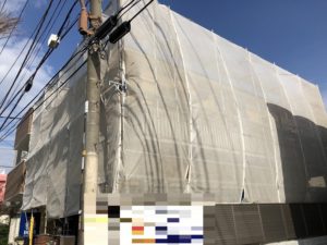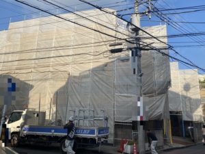 神奈川県川崎市において、塗装工事・防水工事のための足場を施工しました❕❕ 足場の倒壊防...