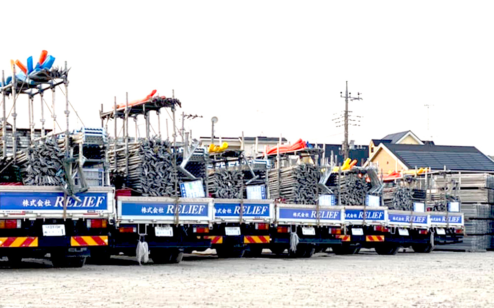 進学校だった高校を卒業してすぐに鳶の仕事に入ったが、親は進学ではなく就職という進路を決めた落合に反対は全くしなかった。決めたことには真っ直ぐ、辛抱強くやり抜けることが分かっていたのかもしれない。今、リリーフの経理を厳しいプロの目で管理しているのは長年他社にて経理一筋で勤めてきた母だ。職人の経験しか無いままに会社を起こした落合に経理の視点を伝え、経営のサポートをしている彼女の日課は毎朝会社をピカピカに掃除して、神棚に御神酒をあげ職人全員の無事を祈ること。ほんわりと穏やかだが、事務所前にタバコを捨てる職人がいたらバシっと叱る。たたき上げの職人社長と、ベテラン経理の大女将、そんな2人が事務所を守っている。職人が生き生きと仕事やプライベートに全力で取り組める環境作り、そして新事業で培われるであろう新たな経験と実績をもとにさらに同社が飛躍を遂げる日は近い。2~3年後、広い資材ヤードにはさらにたくさんの足場資材が並び、広場ではたくさんの職人たちが楽しくキャッチボールしている姿が見られるかもしれない。40名体制になった株式会社リリーフがどんな会社になっていくのか、在籍する職人がどのように成長し変わっていくのか、その成長過程に私たちは多くを学ぶことになるだろう。