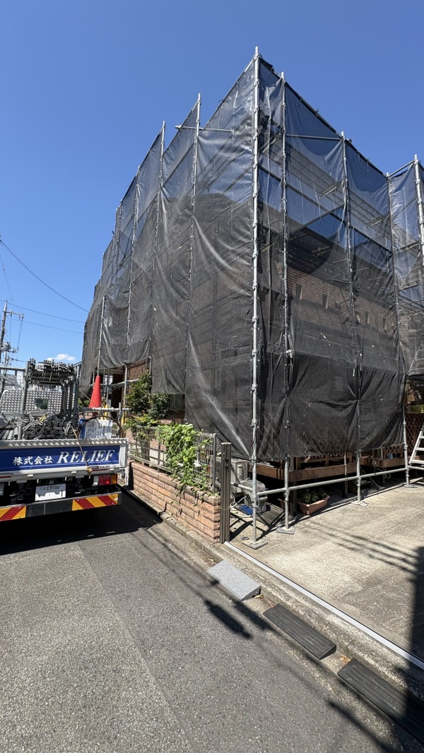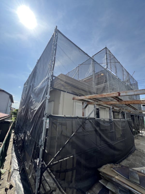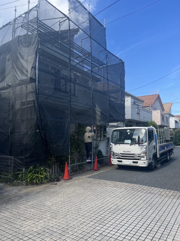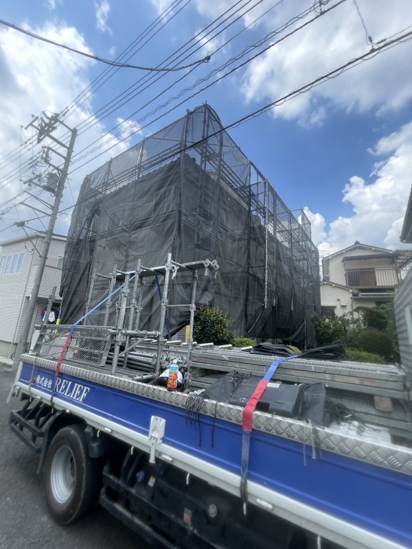 先日、埼玉県所沢市にて、戸建(232m²)足場架設工事を行いました。 2名作業で、約5時間にて無事作業終了いたしました。