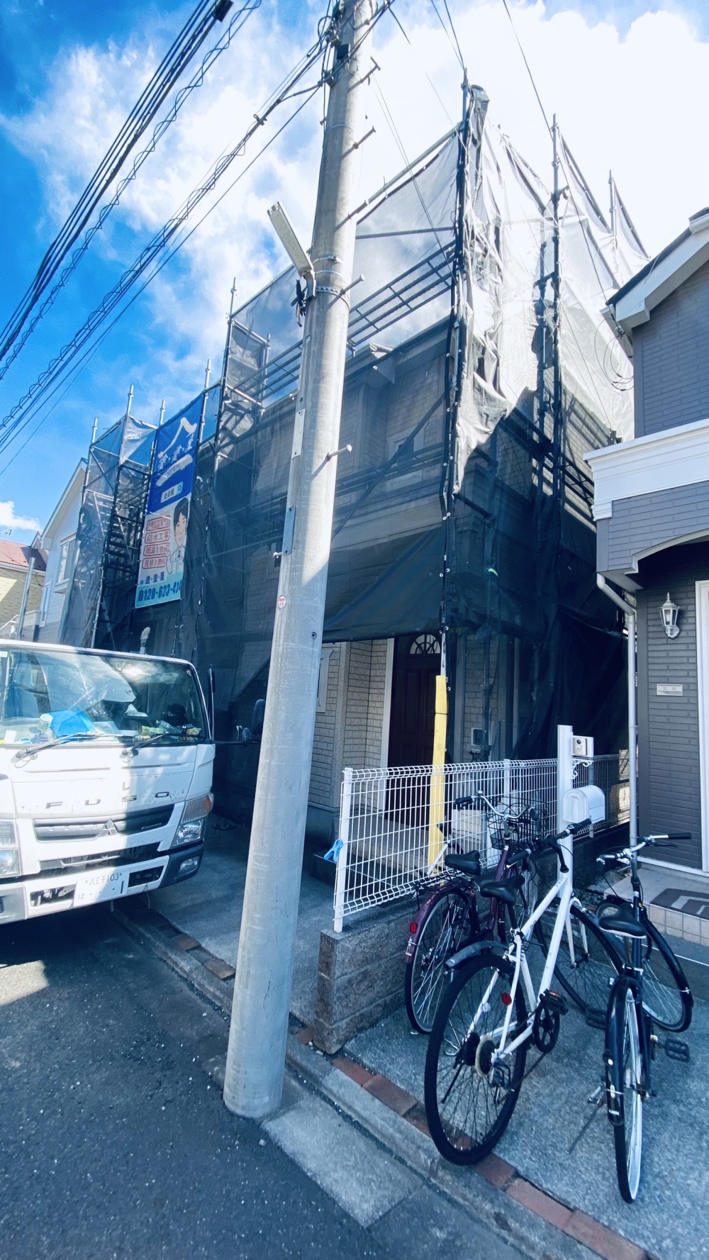 住所:東京都東大和市施工内容:戸建足場架設工事用途:屋根塗装工事・外壁塗装工事に伴う足場架設工事先日、東京都東大和市にて戸建足場架設工事を行い2人で約4時間で無事に作業終了いたしました。T様、ご依頼をいただきありがとうございました。
