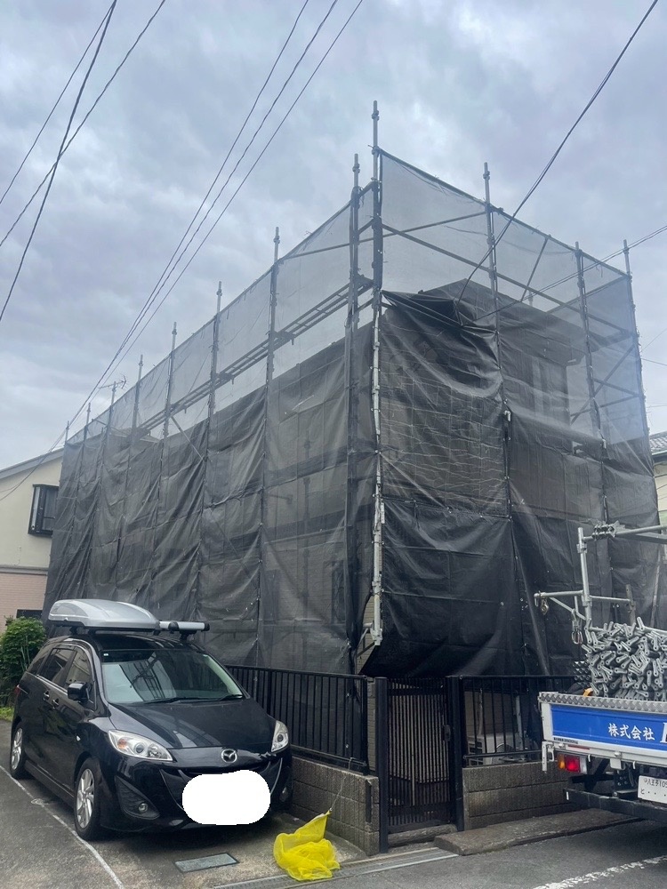 住所:東京都町田市施工内容:戸建足場架設工事用途:屋根、外壁塗装工事・幕下サイディング貼り替え工事に伴う足場架設工事先日、東京都町田市にて戸建足場架設工事を行い2人で約4時間で無事に作業終了いたしました。H様、ご依頼をいただきありがとうございました。