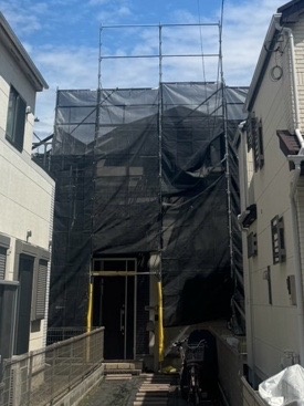 住所:東京都府中市施工内容:戸建足場架設工事用途:外壁塗装工事・屋根工事に伴う足場架設工事先日、東京都府中市にて戸建足場架設工事を行い2人で約4時間で無事に作業終了いたしました。T様、ご依頼をいただきありがとうございました。